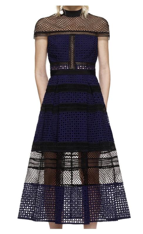 Оно очень удобное и благодаря А-силуэту одинаково хорошо будет смотреться на фигуре любого типа. Верх приталенный, с короткими рукавами, низ свободный, длины миди. Его главной особенностью является то, что оно выполнено в красивом сочетании темно-синего и черного цвета из эффектного ажурного материала. Цвет: темно-синий с черным Код товара 15401-1