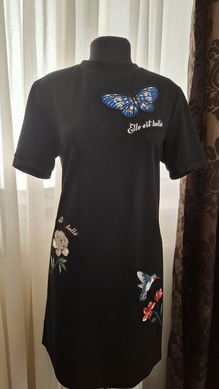 Платье new look из натурального плотного трикотажа очень мягкая ткань, приятная на ощупь не скатывается с красивыми аппликациями Плечи-40 пог-50/54 длина-89 бедра-52/54