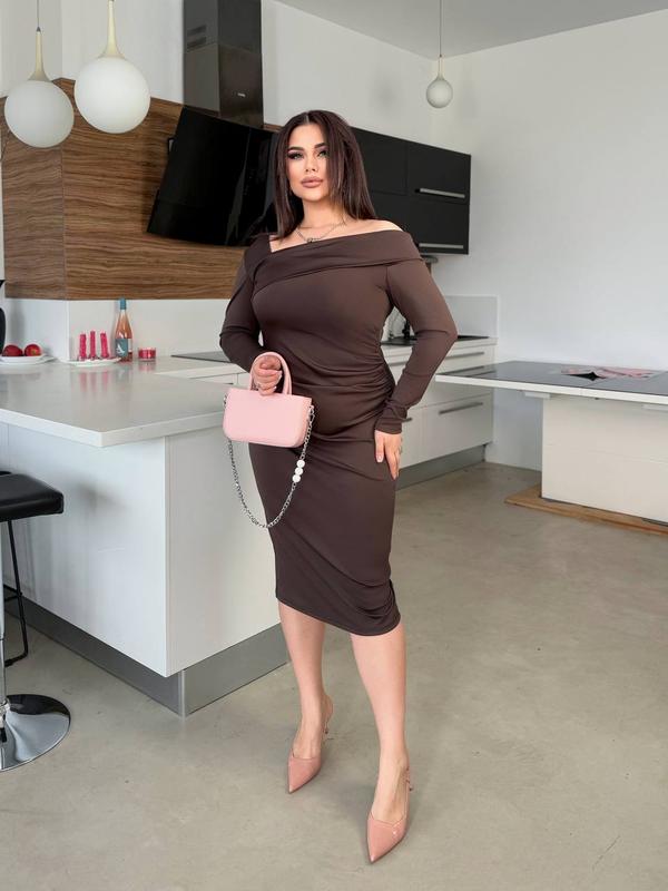 🩷🩷 НОВИНКА 🩷🩷 Мод: 194 Цена: 1000грн Размеры: 48-50, 52-54. Стильный выбор для любого мероприятия: Параметры: ОГ платья/ОС: 48-50:94-118 /98-118 52-54: 102-126/ 104-126 Длина платья / длина рукава, от плеча: 48-50: 110/ 59 52-64: 110 / 60 -Ткань: дайвинг, красиво тянется. Кольори: -черный; -шоколадный. сев