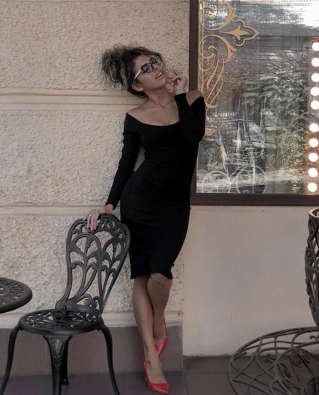 Трикотажное платье отличного качества украинского производства в рубчик, со спущенными, открытыми плечами, размер С-М, на последнем фото одето на параметры 83/70/95, рост 165 см, состояние идеальное, одевалось всего несколько раз