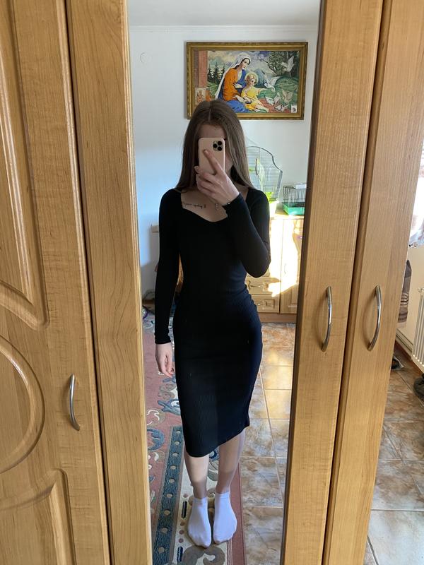 Черное трикотажное платье в рубчик, состояние новой, ни разу не одевала. Размер Xs-s) На фото рост 161