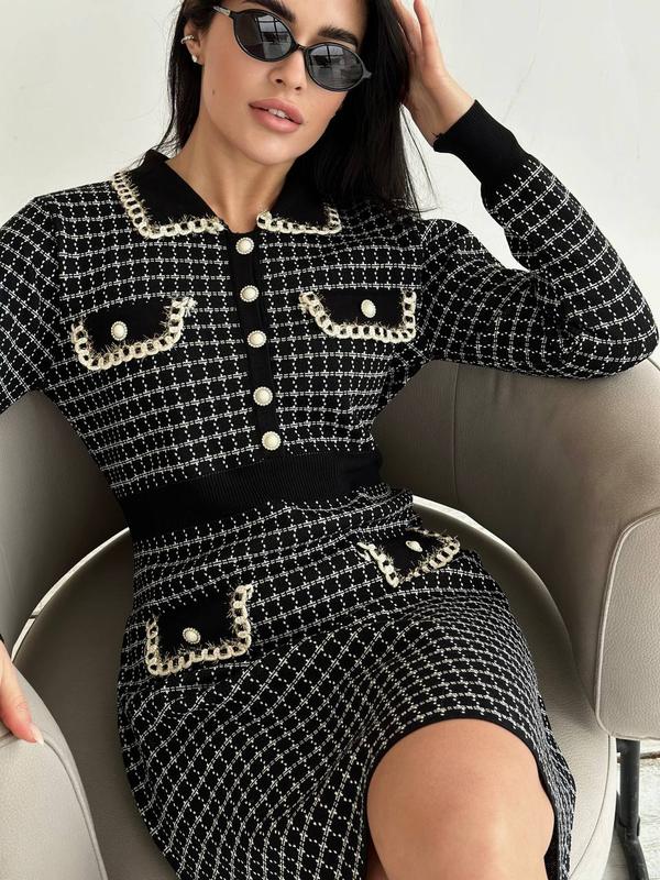 2547 Лаконичное черное-белое платье с жемчужиной отделкой, акцентными деталями и изящными пуговицами🤍 Размер: универсал с/м Ткань: твид Замеры: Ог до 100,от до 80,ос до 110,рукав 57, длина 93 ✅ Наличие: Универсал (42-44)