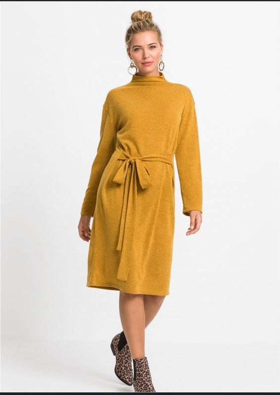 платье-гольф-миди с поясом,пог 56,длина 101,цвет рыжий.