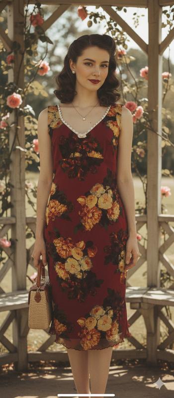 нове, не носила Это бордовое платье-комбинация (слип-платье) с желтым цветочным принтом, выполненное в стиле 90-х или 2000-х годов.