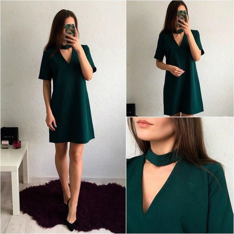 Стильное прямое платье изумрудного цвета с чокером от zara