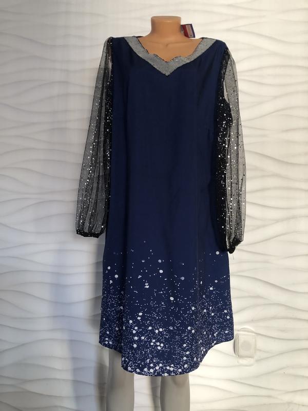 Новое праздничное платье.Материал полиэстер.Длина 95см.Рукав 62см..Пог 64см(есть место под грудь).Поб 69см.Плечи44см.