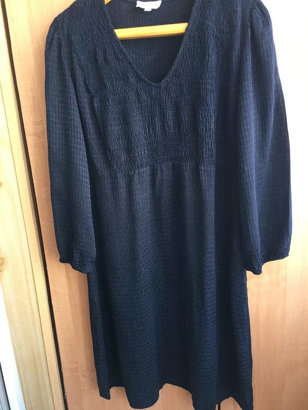 Темно синього кольору , тканина візкоза приємна на дотик довж 95 см, пог 55 см, плечі 40 см поб 60 см рукав 53 см стан нової
