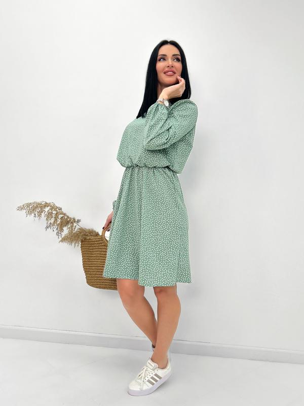 Женское платье в горошек с длинным рукавом "Virginia" Арт: 8576 ✔️Сочетание элегантного фасона и лаконичного дизайна ✔️Акцентированная талия и длина меди ✔️Легкая ткань с актуальным принтом Цена🏷: 495 грн ⠀ 🎨Цвета: черный, фрезовый, капучино, темно-зеленый, фисташковый ✂️Размеры: 42-44, 46-48, 50-52🔥 🧶Материал: софт ⠀ 📏Замеры: Длина по спинке: 104-106 см Длина рукава от горловины: 62-63 см