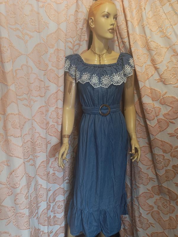 длина -130;пог-56;вырез резиночка;вышитая оборочка;талия-44*52, резиночка;пояс;бедра-62;низ оборочка.
