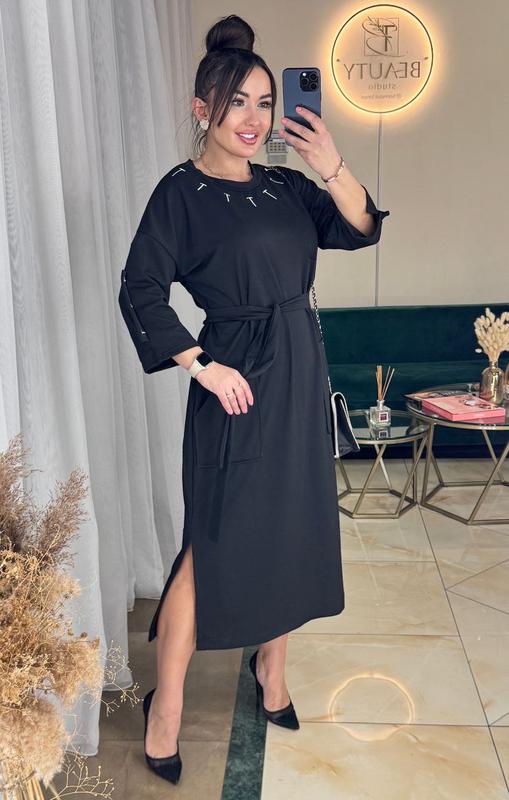 💐Платье "Вышивка"🌷 Модель: 176 🩷Размер: 48-52, 54-58, 60-64 🩷Тканина: трикотаж двунитка Цвет: черный, беж Стильное платье длины миди с накладными карманами и разрезом со стороны. Оригинальная вышивка по горловине и рукавам, придает изделию эффектности. Трикотаж имеет растяжимость, длинный ремень позволяет экспериментировать с образом. 📎Замеры: 🩷 🩷48-52 Обхват груди 112 см Обхват стегон 116 см Рукав 3/4 Длина изделия 122 см 🩷54-58 Обхват груди 120 см Обхват стегон 128 см Рукав 3/4 Длина изделия 124 см 🩷60-64 Обхват груди 130 см Обхват стегон 136 см Рукав 3/4 Длина изделия 126 см Есть видео обзор