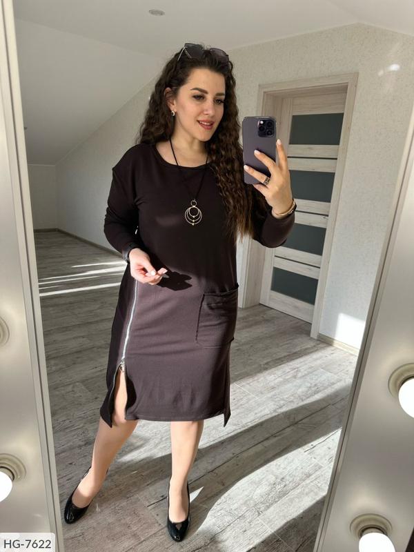 Сукня HG-7622 Цена: 740 грн Размеры: 46-48, 50-52, 54-56, 58-60, 62-64, 66-68 Сукня Модель 537vl Цвет- черный, бутилка, алый, шоколад, серый Тканина- двухнитка Свободное платье, длинный рукав, сбоку слева рабочая молния с кольцом от груди до низа платья, справа сбоку карман. Передняя часть немного короче, чем задняя. Украшение входит в комплект( фото оригинал в альбоме, кулон немного отличается) Параметры внешнего шва изделия: 46-48: ог107, от107, об107, рукав от шва 53см, длина спереди 102, длина сзади 110см, 50-52: ог115, от115, об115, рукав от шва 54см, длина спереди 103см, длина сзади 112см, 54-56: ог123, от123, об123, рукав от шва 55, длина спереди 105см, длина сзади 114см, 58-60: ог131, от131, об131, рукав от шва 56см, длина спереди 108, длина сзади 116см, 62-64: ог140, от140, об140, рукав от шва 57, длина спереди 110, длина сзади 118см, 66-68: ог146, от146, об146, рукав от шва 57см, длина сзади 120см.
