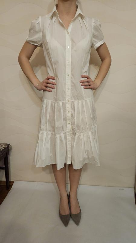Платье хлопковое, батист Ширина по грудях 52см Ширина по талии 44см Ширина по стегнами 52см Длина 109 см Параметры модели 90-68-102, рост 174