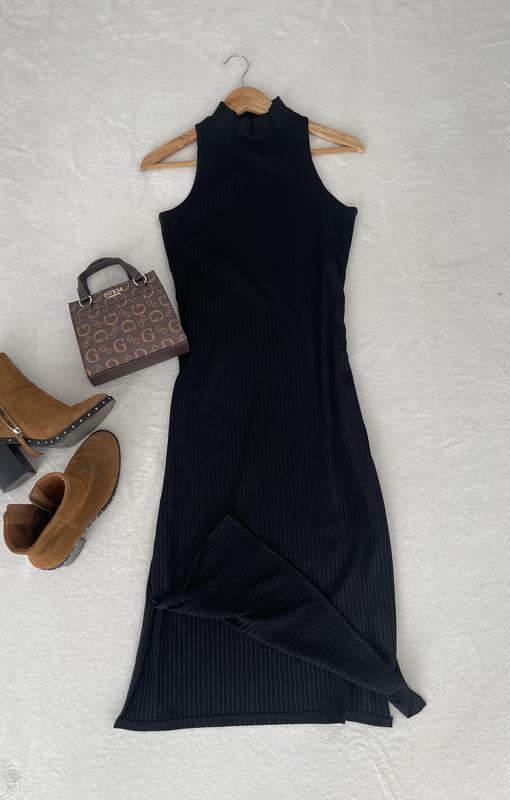 Платье черного цвета, прямого кроя, длина миди.Размер S-M.Ткань тянется.