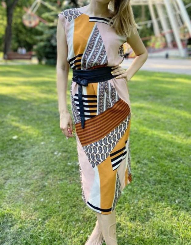 Сукня міді з різнокольоровим геометричним принтом, по талії резинка, сукня з підкладкою. Сукня ідеальному стані 👌 🤗Прошу підписатися в тік тоці, збираємо підписників для проведення прямих ефірів, мій нік valeri_veg🤗 ✅При покупці двох і більше речей знижка 15%✅ Заміри: Пог 49 Пот 36 (тягнеться до 45) Пос 52 Довжина 118 см 📦📬Відправляю по передоплаті на карту💳 приват банку або моно, та через безпечну оплату.