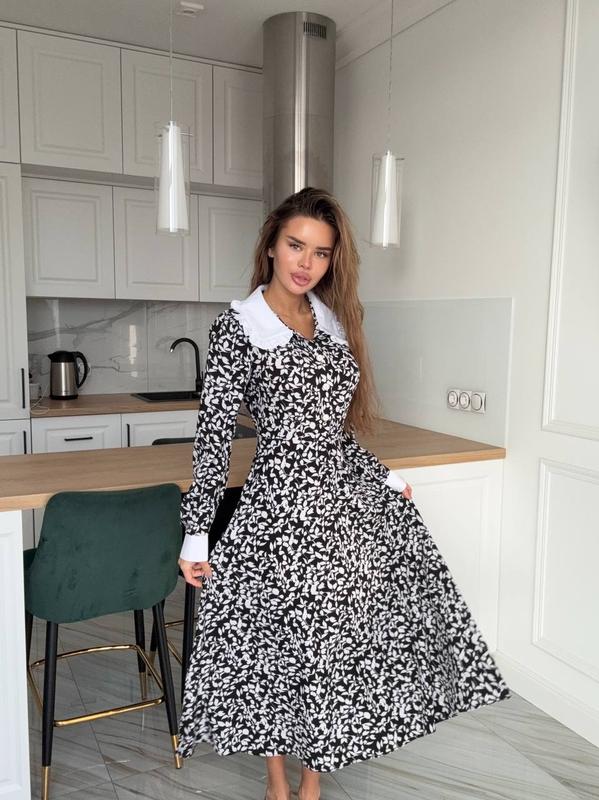 Модель 5609кот Жіноча сукня Розмірний ряд S,M,L,XL Кольори беж, чорна квітка, червоний та горошок Тканина софт Застібається на гудзики попереду Супер якість