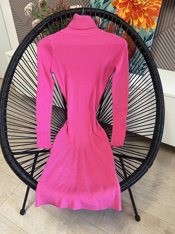 Яркое платье по фигурке в рубчик розового цвета. Длина миди. Ткань хорошо тянется. Размер не указан, идет на XS-M