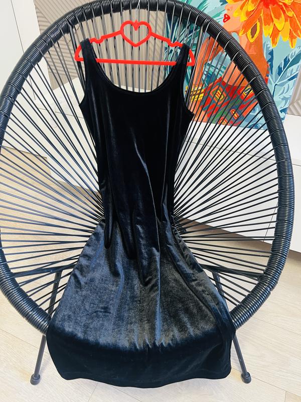 Оксамитова чорна сукня по фігурці. Дуже ефектно сідає. Ззаду невеликий розріз. Розмір XS