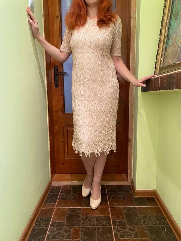 Платье средней длины нежно-персикового цвета, размер М, на подкладке