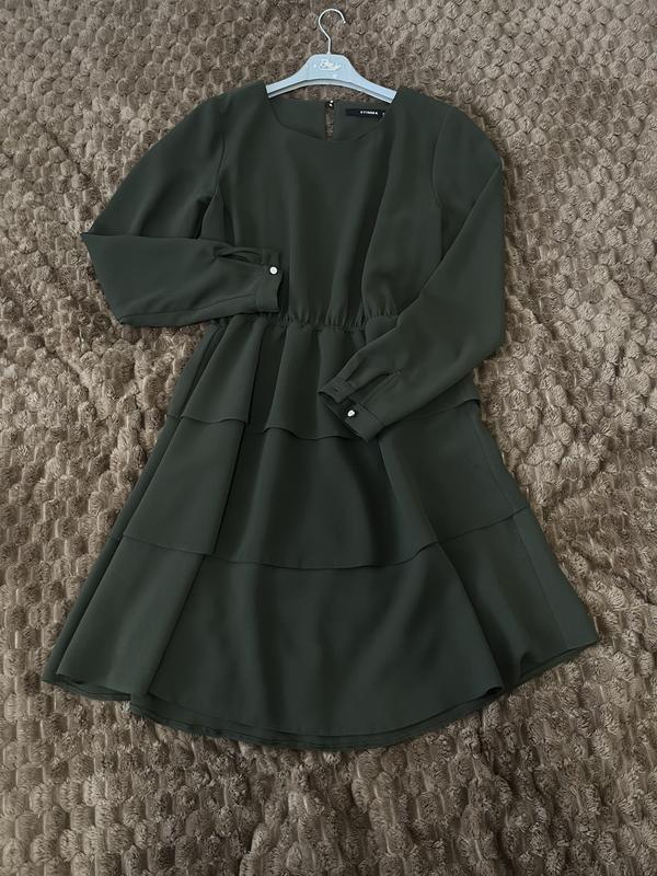 Женское платье с длинным рукавом и рюшами, размер М, невероятно красивое и женственное