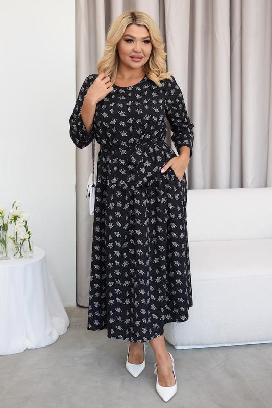Сделано с любовью! Ищите что-то интересное для похода на любое мероприятие, для работы, тогда вы нашли!Элегантное платье из легкой ткани подчеркнет все ваши преимущества Цвет черный рисунок веер, черный рисунок цветы Код 272 "Марьям" (Ava) Ткань: софт вискозный Размеры изделия у віялі 50-52,54-56,58-60 в цветы 50-52,54-56,58-60 Замеры изделия: 50-52 ОГ-106, ОТ -110, ОБ-свободный-валан.Длина изделия 122, длина рукава 48 54-56 ОГ-114, ОТ -118, ОБ-свободный-валан.Длина изделия 123, длина рукава 48 58-60 ОГ-122, ОТ-126, ОБ-свободный-валан.Длина изделия 124,длина рукава 48 Платье свободного кроя с укороченным рукавом, завязывается на пояс из основной ткани, в боковых швах есть карманы.
