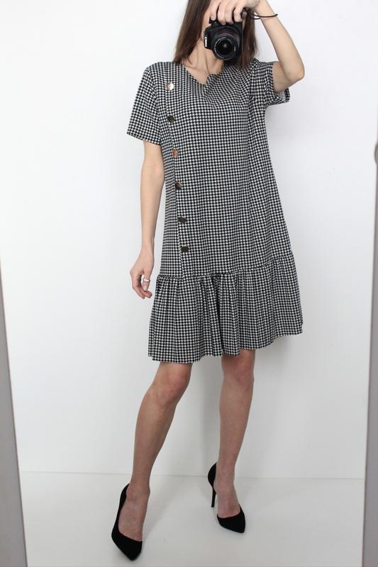 Платье свободного кроя в гусиную лапку италия 🖤🤍