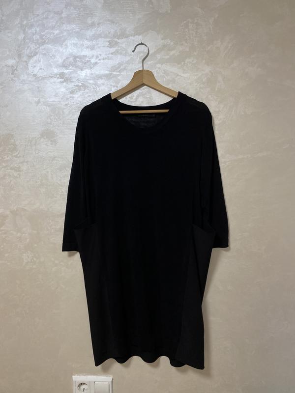 Сукня оригінального крою бренду COS, чорного кольору, розмір S, але добре сідає на розмір М. Фасон сукні по боках з імітацією кишень, що починають з тканини-компаньона і переходять в деталь спинки. Гарно драпирується і виглядає в районі стегон, фото на тремпелі не передати посадку. Довжина 94 см, напів обхват під груддю 50 см, плече 12 см. Напів обхват стегон за рахунок фасону до 54 см. Основна тканина : ліоцел 60 %, льон 25 %, шовк 15 %, друга- 98 % поліестер, 2 % еластан
