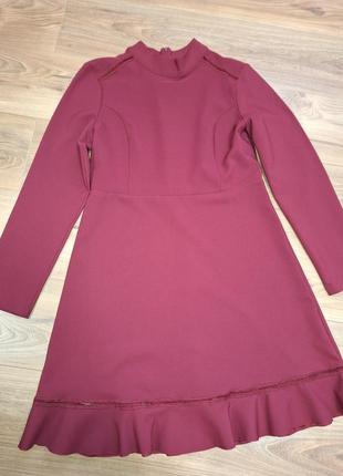Новое элегантное платье цвета марсала, с сетевыми прозрачными вставками на плечах и внизу платья.Очень красивое и стильное, размер 48.Ткань стрейчевая, тянется, приятная к телу. Плечи 40.5 см Пог 49 см Талия /пояс 43 см Длина 84 см Рукав 60см Тканина тягнеться
