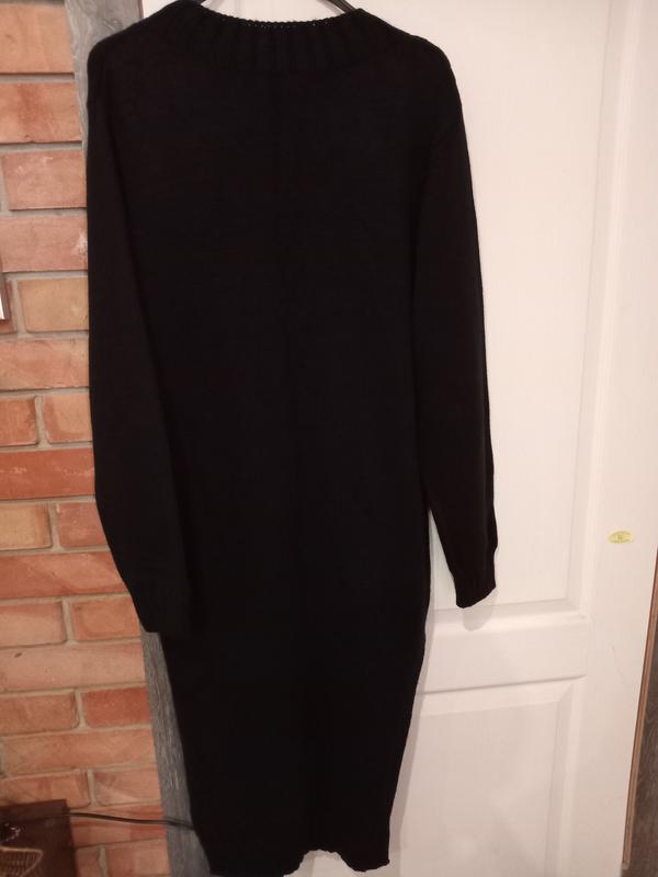 Черное вязанное миди платье с разрезом, в составе акрил, хлопок и шерсть, абсолютно новое, идеально на рост до 160 см, на размер xs и s