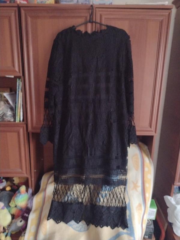 Очень шикарное платье кружевное. На молнии и с небольшой распылкой сзади.