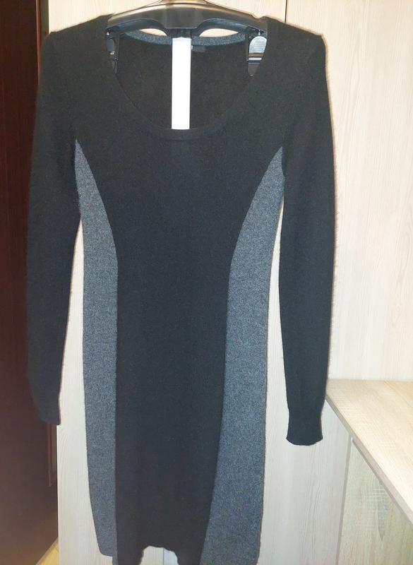 Платье из 100% кашемира от бренда Uniqlo, основной цвет черный со вставками по бокам серого цвета достаточно хорошо вытонает силуэт. Очень мягкая, пушистая, эластичная, теплая. Вы будете чувствовать себя в ней комфортно и уютно. Есть незначительный дефект спереди в районе правого плеча, при использовании почти незаметно, последнее фото. В размере XS, но лучше ориентироваться по замерам: Платье хорошо тянется на 10 см точно. Длина - 90 см, обхват груди ~ 80 см (тянется до - 95 см), обхват талии ~ 75 см (тянется до 82 см), обхват стегон ~ 84 см (тягнеться ~ 96 см), рукав длина 61 см, плечи 38 см. Есть фото на мне, Мои замеры 102-86-112.