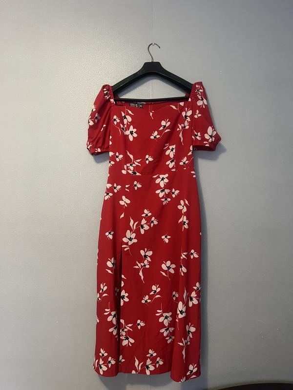 Платье красное в цветы, сарафан, имеет распорку по ножке Ог-104см От-87см Об-110см Длина-122см