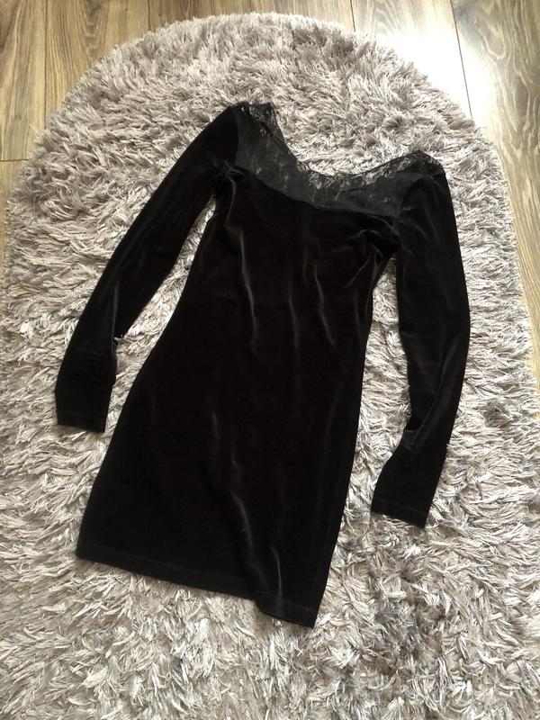 Платье красиво ложится по фигуре, с кружевом. Размер S.