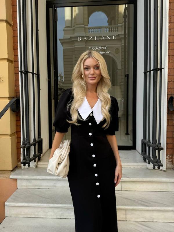 Элегантное платье с белым воротничком 🔥 ▪️Мод: 297 ▪️Цена: 930 грн ▪️Ткань: костюмка, воротничок-коттон ▪️Размер: 42-44 и 44-46 Платье с белым воротничком не теряет своей актуальности. Классический темперамент модели придает черный цвет. Завершают образ декоративный воротник и белые пуговицы. Черный цвет подходит для любого сезона. А темное платье - это всегда лучший выбор для любого мероприятия. Она олицетворяет современный минималистичный подход и создает основу для множества твоих невероятных образов.37