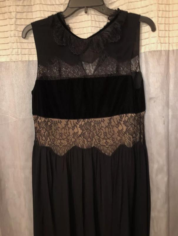 состояние нового, бесподобное платье, верх из нежного кружева и бархата, низ шелковая вискоза на бежевом подкладе, сзади на шее завязка из бархатистой ленты длина 85 между проймами 44 купилась для мероприятия, но изменились обстоятельства