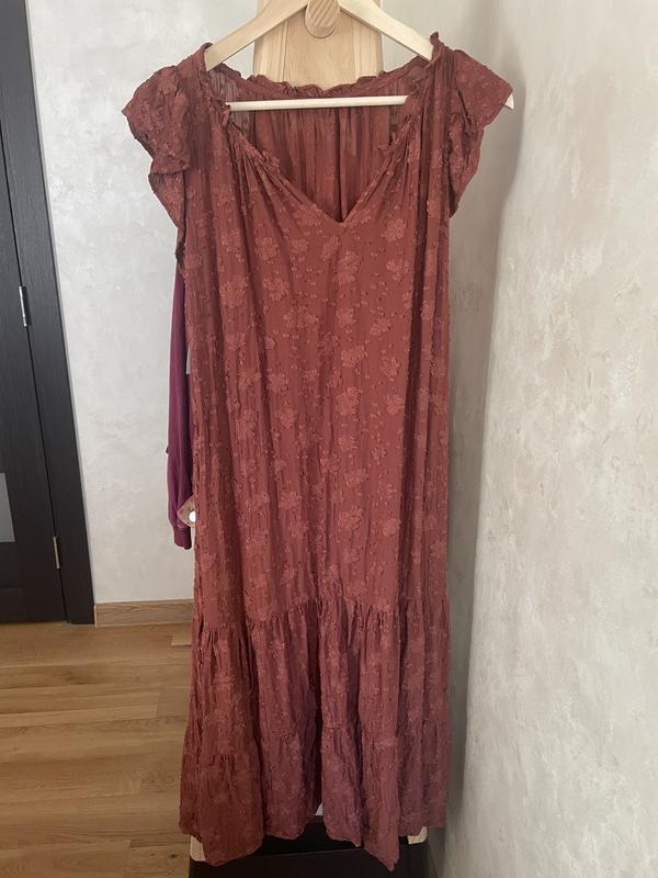 Великолепное, натуральное платье next насыщенного бронзового цвета. Невесомая разлетайка со съемным поясом. Очень красивая. Стан идеален, не носилась Параметры изделия Длина по спинке 108 см Объем груди до 122 Талия 128