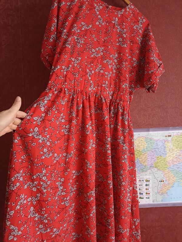 Красное платье отьного кроя с гарым цветочным принтом
