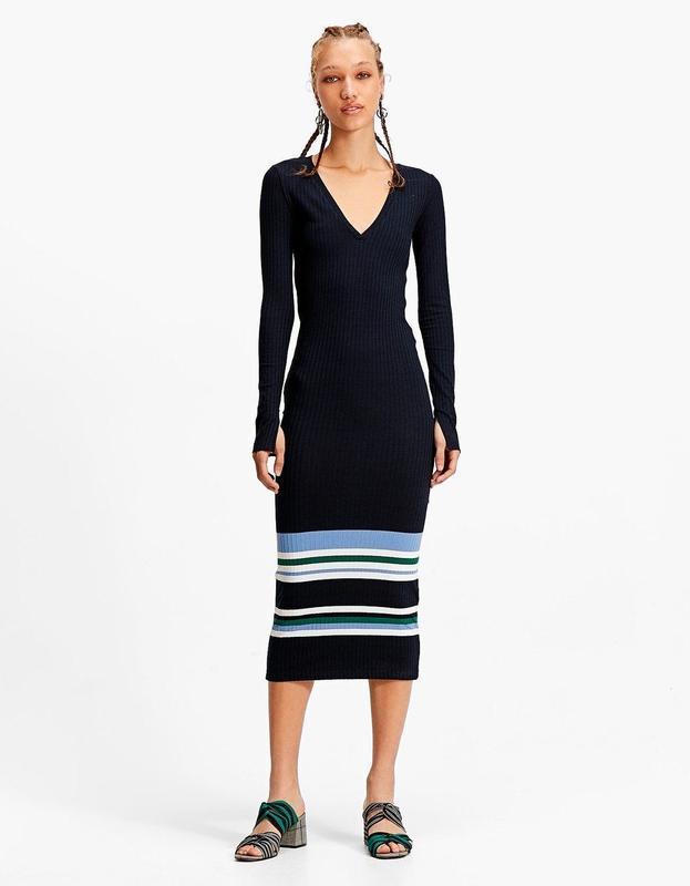 Плечи- 32 см, ПОГ- 40 см, ПОТ- 33 см, ПОБ- 40 см, длина рукава- 66 см, длина платья- 115 см. Трикотаж хорошо тянется, глубокое декольте. Под пальцы вырезы.