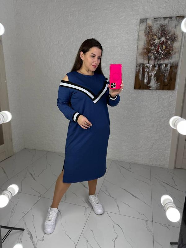 ✅✅✅НОВИНКА,ДУЖНО ГАРНО ЗАЙШЛА, получили в количестве, можно на рекламу ✅✅✅ Платье Модель 1008VL Размеры : 46-48, 50-52, 54-56, 58-60 Цвета: черный, хаки, джинс Ткань : двухнитка ( хорошего качества) Платье немного свободного кроя в талии, интересная имитация майки и накидки, украшена широким лампасом спереди и по спинке v-образным вырезом. Длинные рукава по низу лампас. Удлиненное платье ниже колена, по бокам разрезы Параметры модели-нормы ОГ96, ОТ74, ОБ104, рост 170см, на ней размер 46-48; параметры модели-балталл ОГ108, ОТ86, ОБ110, рост 165см, на ней размер 50-52. Замеры изделия по внешнему шву: Размер 46-48: Объем груди 112 Объем талии 104 Объем бёдер 112 Длина рукава от лампаса 58см Длина по спинке 108см Размер 50-52: Объем груди 120 Объем талии 112 Объем бедер 120 Длина рукава от лампаса 58см Длина по спинке 109см Размер 54-56: Объем груди 128 Объем талии 120 Объем бёдер 128 Длина рукава от лампаса 58см Длина по спинке 110см Размер 58-60: Объем груди 138 Объем талии 128 Обʼєм стегон 138 Длина рукава от лампаса 60см Длина по спинке 112см Оплата: 200 грн передоплати на НП, повна оплата укрпошта. Отправка:116, Среда, суббота. Четвер является отправкой но не регулярно. Мой инст.: modna_style10