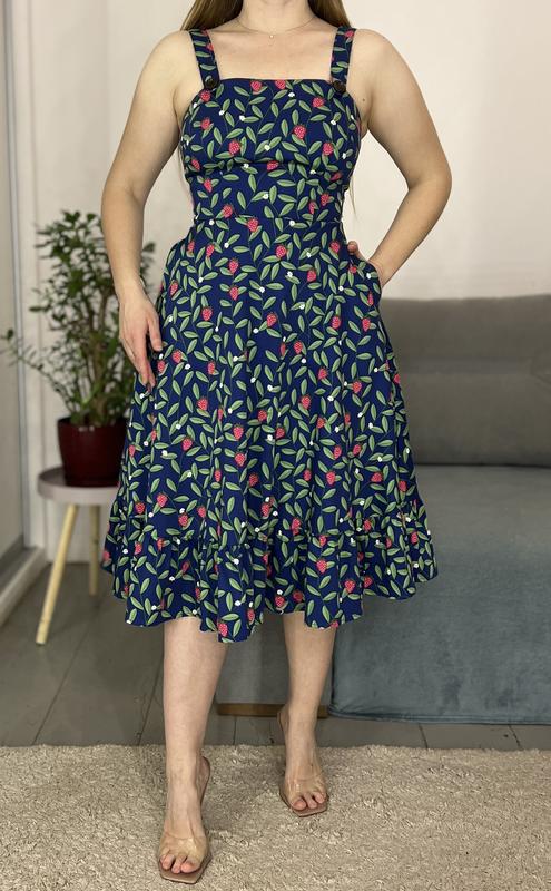 Для більш точного визначення, виміри, порівнюйте із вимірами подібної речі, а не зі своїми обсягами. Стильна міді сукня в стилі ретро пін-ап. Тканина щільна, тримає форму, не просвічується, трохи тягнеться. Крій ліф по фігурі. Талія відрізна. Спідниця кльош, низ рюша. Застібається на блискавку позаду. Бретелі регулюються. Є кишені у бічних швах. Стан: ідеальний. Дефекти: ні. Розмір на бирці: XS/8 {Виміри виробу вимірюються у напівобхваті, а не від шва до шва!} Виміри виробу: напівобхват грудей 40-44 см., напівобхват талії 30-33 см., напівобхват стегон 60см. Довжина по спині 80 см., Довжина від плеча 108 см.. Довжина від плеча до талії 39 см. Склад тканини:- Країна виробник: -. Бренд: Collectif. Оплата і доставка: Оплата на картку монобанк. Бронювання на оплату тільки 24г. При змінах наміру купувати обов'язково повідомляйте! Доставка: На час введення воєнного стану уточнюйте чи можлива доставка до Вашого пункту. Актуальні новини можна уточнити на сайті перевізника та за номером телефону контакт-центрів. Не забудьте ПІДПИСАТИСЯ щоб бути в курси всіх новинок та розпродажів!