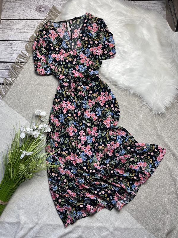 Натуральное женское платье Размер 14(46-48), вискоза, состояние идеально Д 114/126, пог 49, пояс 37, сзади резинка, поб до 58