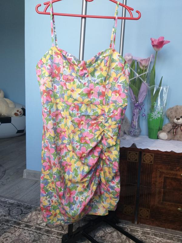 легкое летнее платье, сбоку сборка на резинке, бретельки регулируются