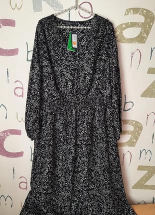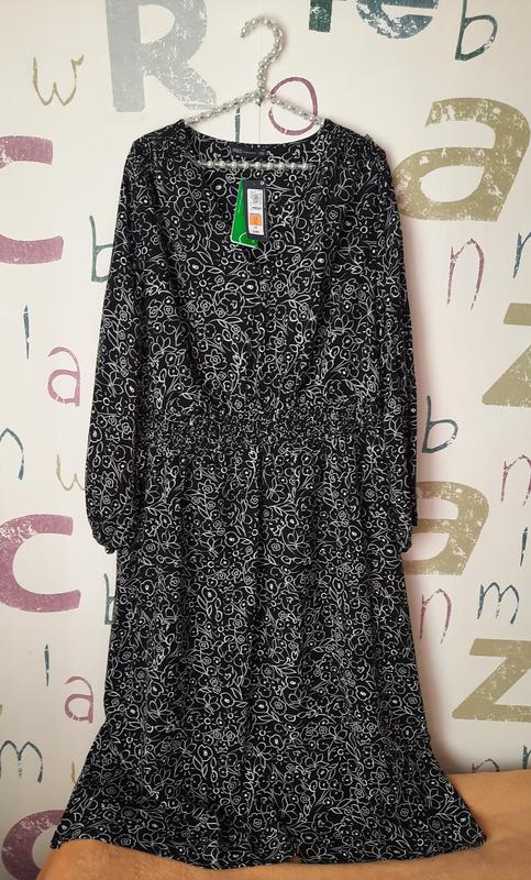 Новое платье платье-миди ВЕЛМКОМ РАЗМЕРА 24 Вискоза Цвет черно/белый Длина 130см.Плечи 50см.Рукав 60см.Биц 25см.ПОГ 75см.ПОТ 52/70см.резинка ПОБ 80см