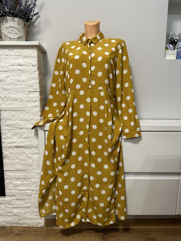 Невероятное платье в горохи яркого цвета Платье-рубашка с разрезами внизу придает ей стильный образ ) P.16 Длина 118 Пог 57 Талия48 Бедра 65 Не забудьте подписаться на мой профиль,тут всегда можно найти большой выбор одежды, обновление каждую неделю и действуют всегда скидки