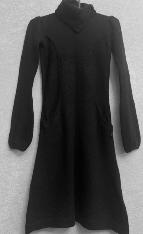Платье черного цвета, бренд Hilfiger Denim, теплое, оригинал, с длинным рукавом, с воротником на пуговицах, размер 6/10- XS. Состав : 35%-вискоза, 30%-лома (шерсть). Длина платья-87 см, длина рукава-59 см, пог-33/34 см, пот-30 см,,тянется