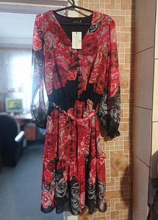 неймовірно красиве плаття 👗 з ярусами Довгий рукав ліхтариків, на кінці гумочки, на поясі теж гумка та поясок На підкладці Спереду на ґудзиках імітації