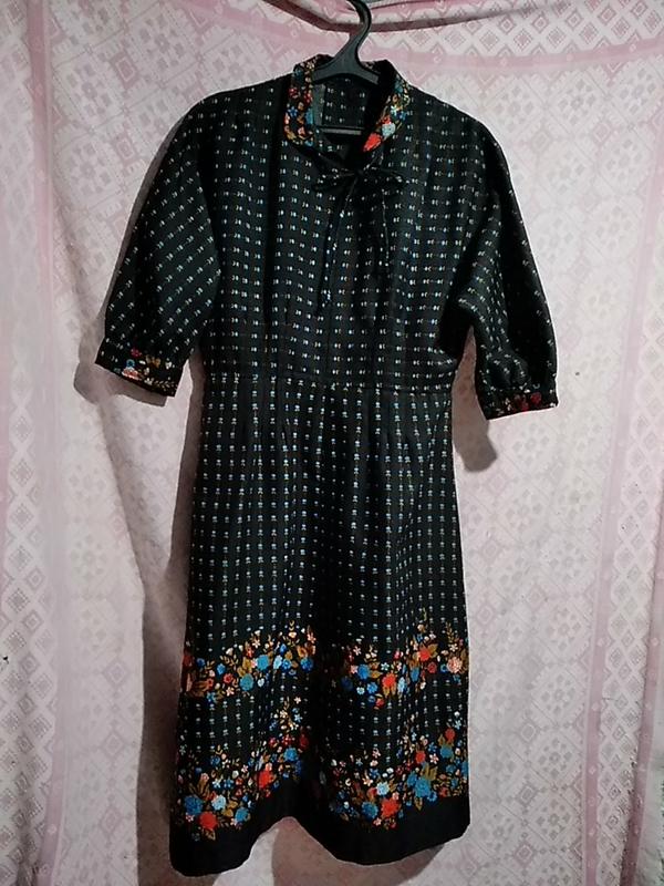 винтажное платье из купонной ткани, бирок нет. рукав летучая мышь длина от ворота 55, пот 39, поб 60, длина по спинке 112.