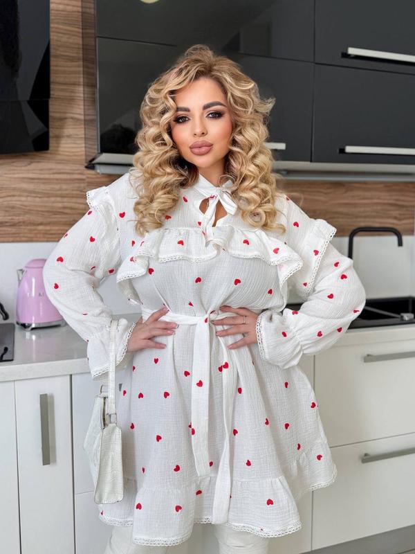 Модель 1446😍 Ткань : муслин Натуральная ткань, которую можно не рекламировать- ее знают все женщины Тканне кружево Цена:48/50;52/54;56/58 Замеры: 48/50-г-110; ос-112 52/54- ог-120; ос-122 56/58- ог-130; ос-132 Рукав-63 см Длина-97 Цена: 1300грн