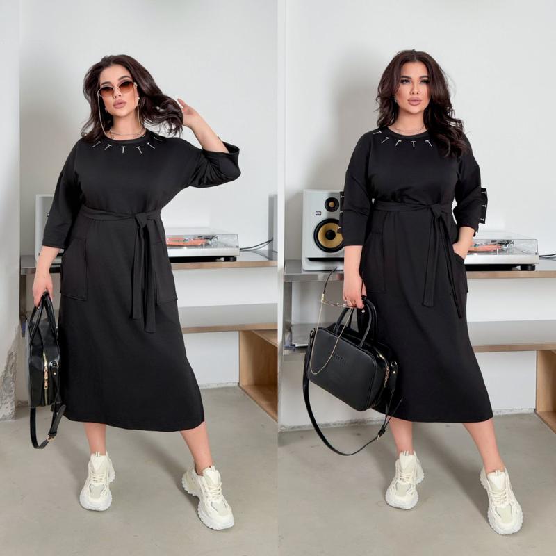 💐Платье "Вышивка"🌷 Модель: 176oksam 🩷Размер: 48-52, 54-58, 60-64 🩷Тканина: трикотаж двунитка Цвет: черный, беж Стильное платье длины миди с накладными карманами и разрезом со стороны. Оригинальная вышивка по горловине и рукавам, придает изделию эффектности. Трикотаж имеет растяжимость, длинный ремень позволяет экспериментировать с образом. 📎Замеры: 🩷 🩷48-52 Обхват груди 112 см Обхват стегон 116 см Рукав 3/4 Длина изделия 122 см 🩷54-58 Обхват груди 120 см Обхват стегон 128 см Рукав 3/4 Длина изделия 124 см 🩷60-64 Обхват груди 130 см Обхват стегон 136 см Рукав 3/4 Длина изделия 126 см