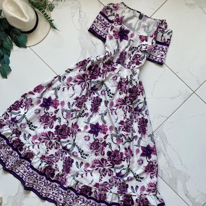 ♥️Платье белое в цветы состояние идеальное, структурированное полиэстер, вырез не глубокий р м -длина 118 -нОг 48-49 -нОт 35-44 ззаду рез. -нОб 63 свободно ФОТО НА ТИЛИ НЕМАЕТ