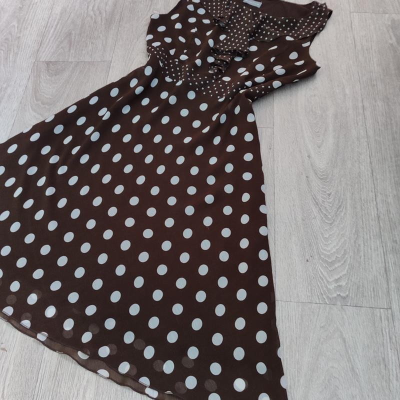 В отличном состоянии винтажное платье. Шифон нежный на подкладке. Коричнева. На спинке замочек. Замеры пог 50см пот 41см длина 103см. В цену входит Ассоциация Шаффи. Укрпочтением оплата на карту сразу.